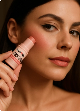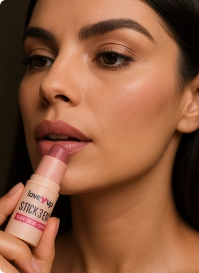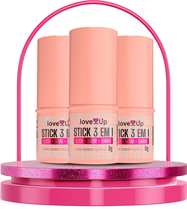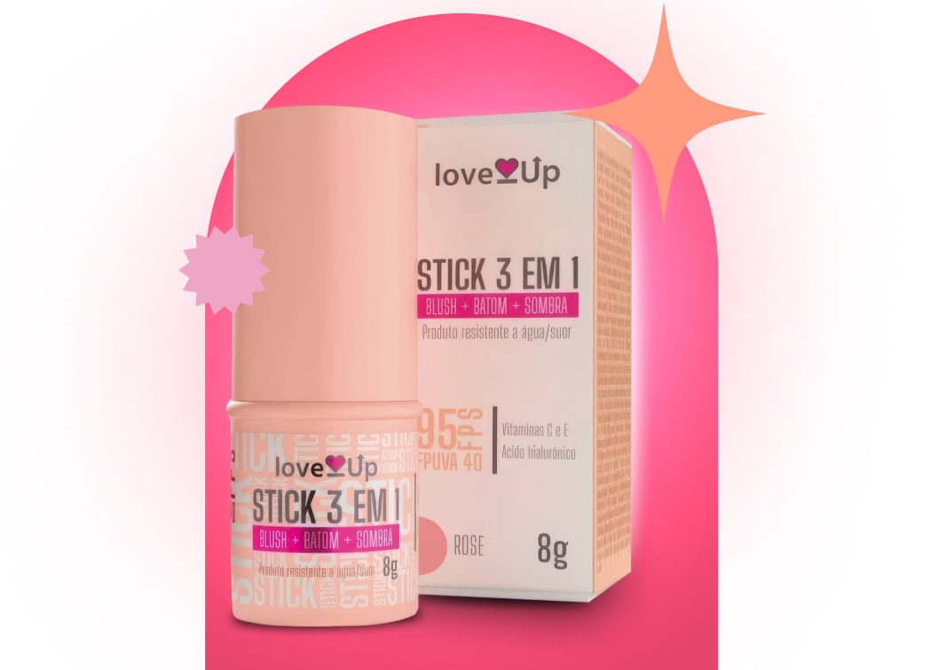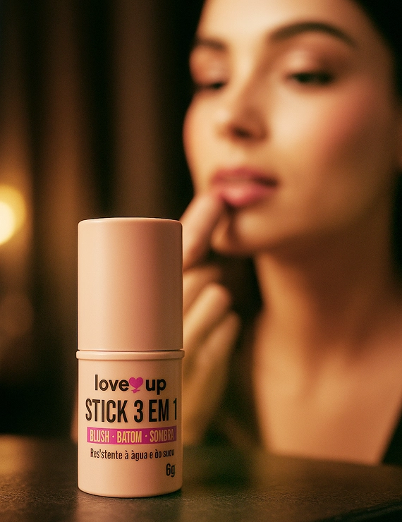 Disponível em 3 tons universais: rose, pêssego e terracota, o LoveUp Stick 3 em 1 foi criado para te acompanhar em qualquer cenário — da correria da cidade aos momentos de pausa.
